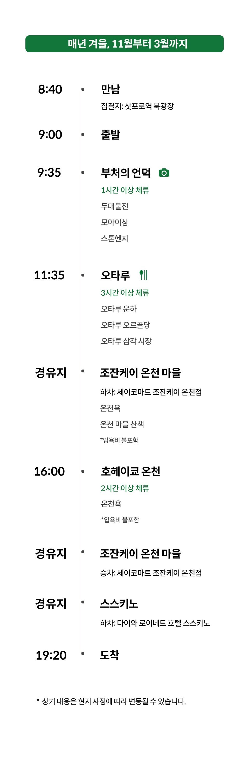 노보리베츠 온천 마을에서는 3시간 10분 동안